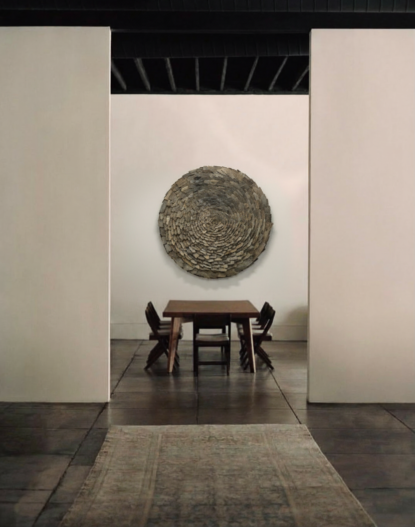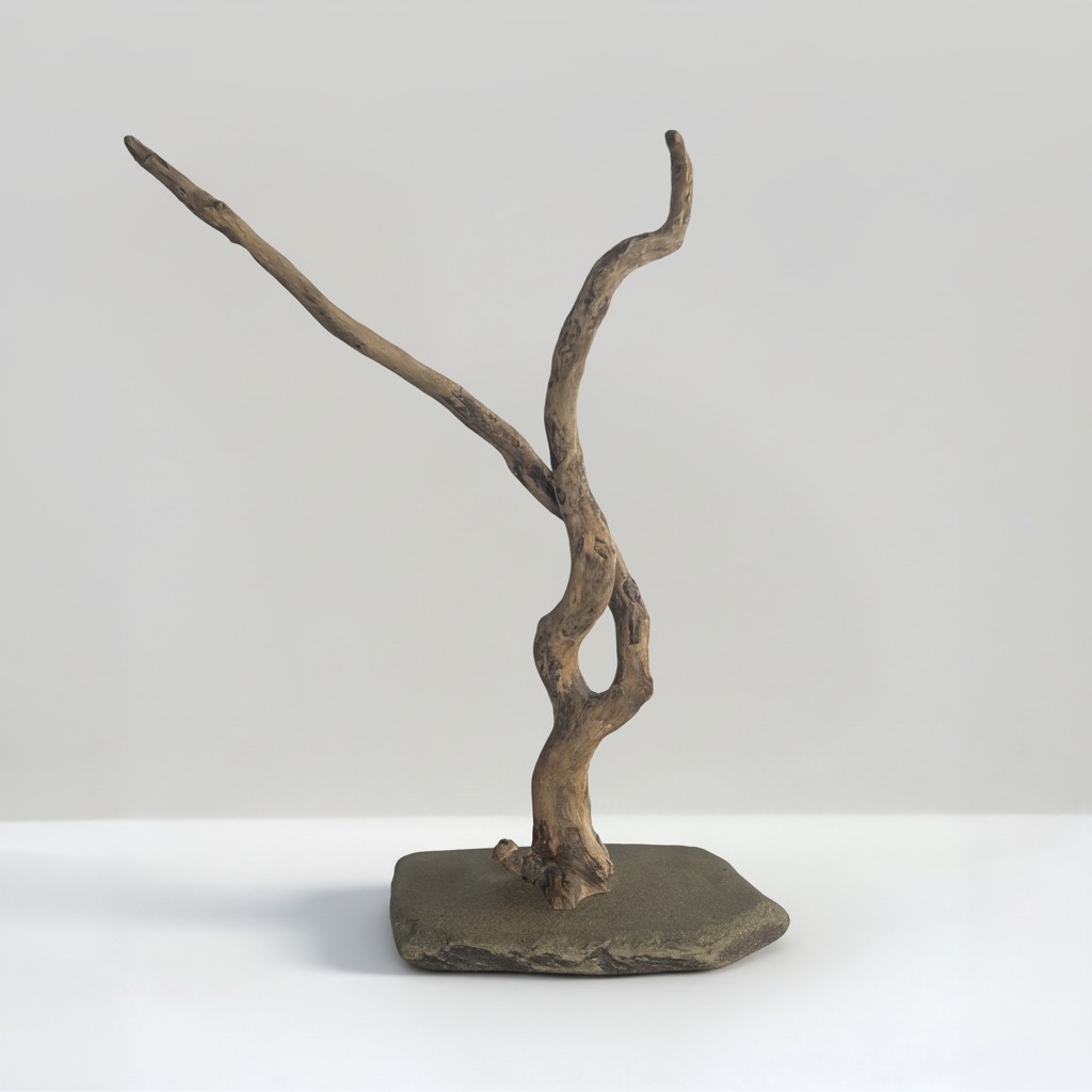Justin explores the silent intelligence of natural systems, such as how water, rocks, and sand shape wood, how time refines structure, and how erosion creates unexpected beauty. His sculptures are not decorative objects but spatial anchors intended to bring an organic presence into built environments. By integrating raw materials with deliberate composition, his works invite us to step back from our lives, to see the whole as a piece shaped by time, with its ups and downs.